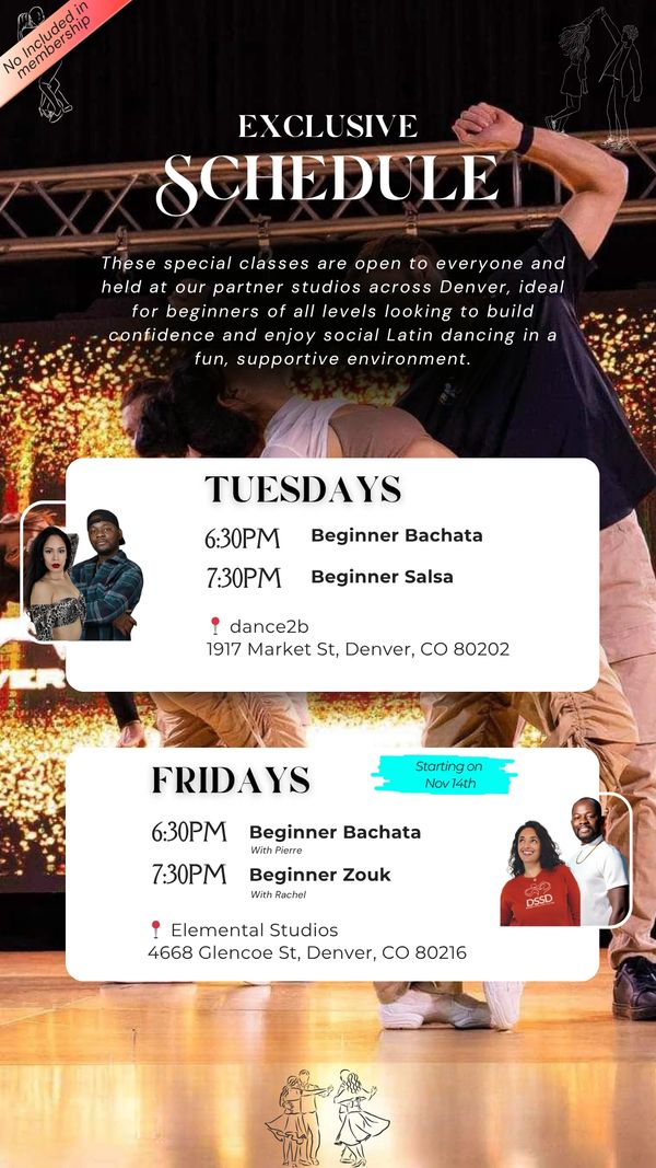 Ideal for brand-new dancers or those who want to master the basics. Learn footwork, rhythm, timing, and simple partner turns.